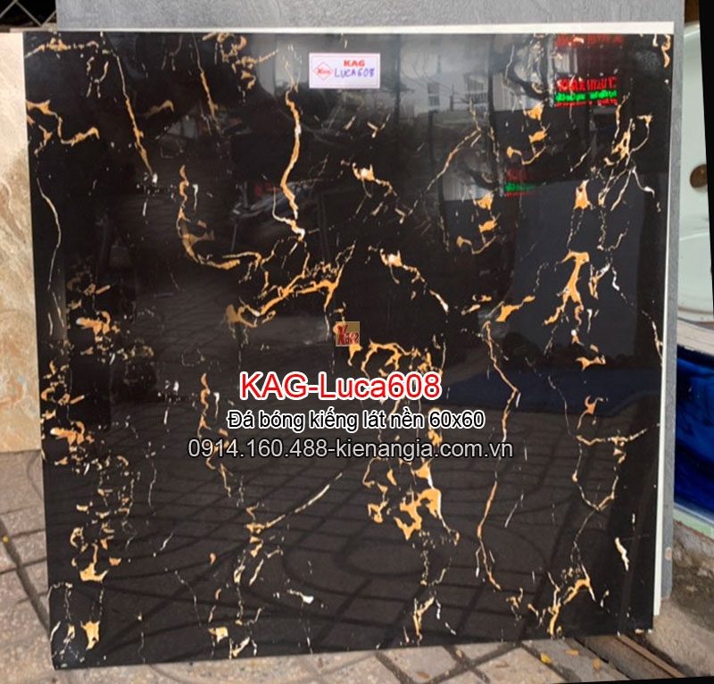 Đá bóng kiếng đen vân vàng lát nền 60x60KAG-Luca608 sáng bóng ,đẹp mẫu mới 2021 giá rẻ KIẾN AN GIA-0914.160.488