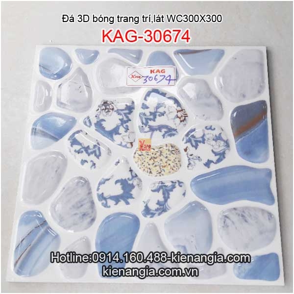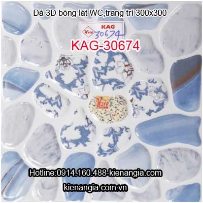 Đá sỏi 3D bóng 300x300 lát WC,trang trí KAG-30674 công nghệ 3D nổi sắc sảo,màu sắc tươi mới,sống động ,khó trầy sướt,chống thấm tốt dùng lát nền WC hay trang trí rất đẹp,giá rẻ KIẾN AN GIA-0914.160.488.