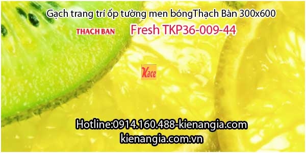 Gạch men bóng Thạch Bàn trang trí TKP36-009-44 chiết khấu cao KIẾN AN GIA.Bộ sưu tập TƯƠI MỚI - FRESH ốp tường phòng ăn,phòng khách rất đẹp.Vân đá Marble nhẹ nhàng được trang trí thêm những lát trái cây: chanh, cam và Kiwi xóa tan cảm giác oi ả của ngày hè.Mẫu thiết kế độc đáo này cho chúng ta cảm nhận một sức sống mới, một luồng năng lượng mới lan tỏa khắp không gian.Nhiều mẫu gạch ốp lát tại 0914.160.488